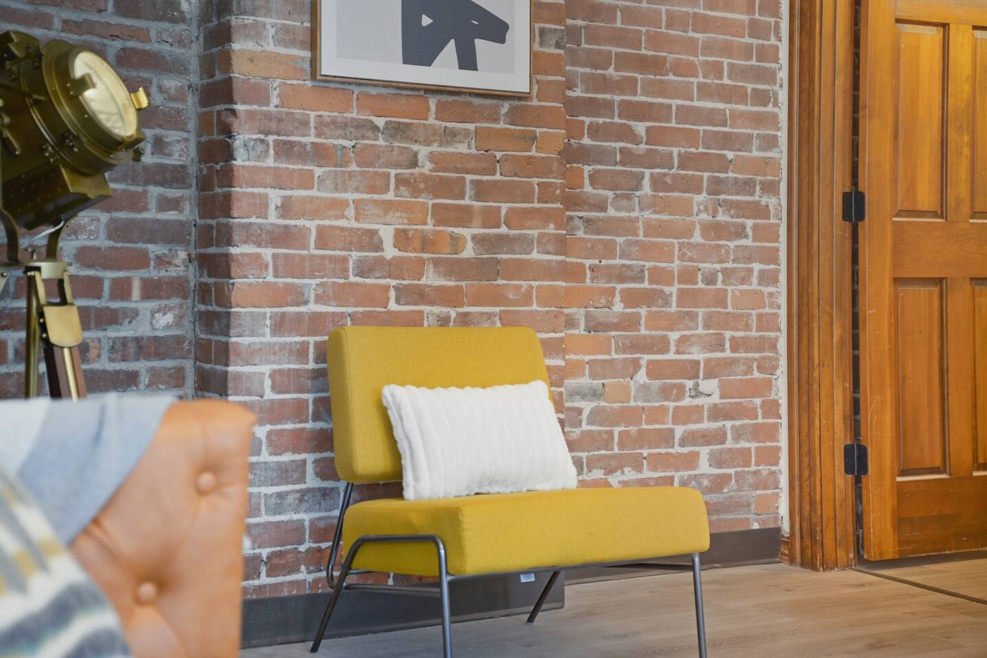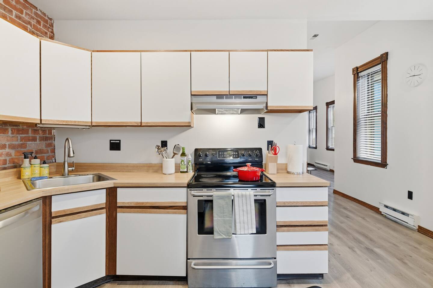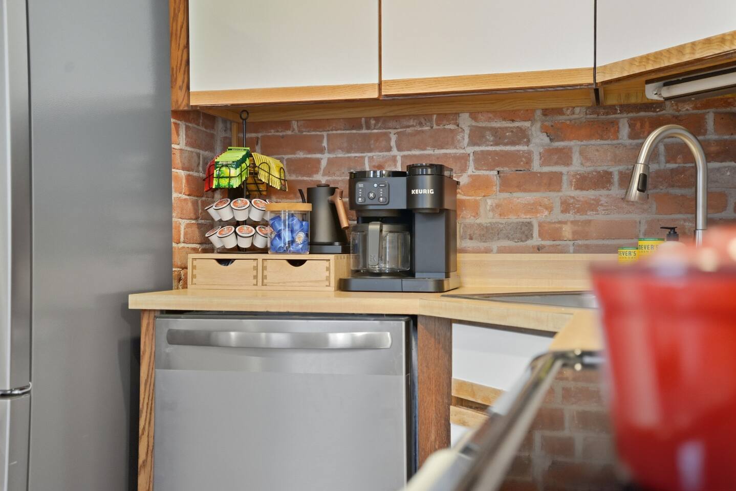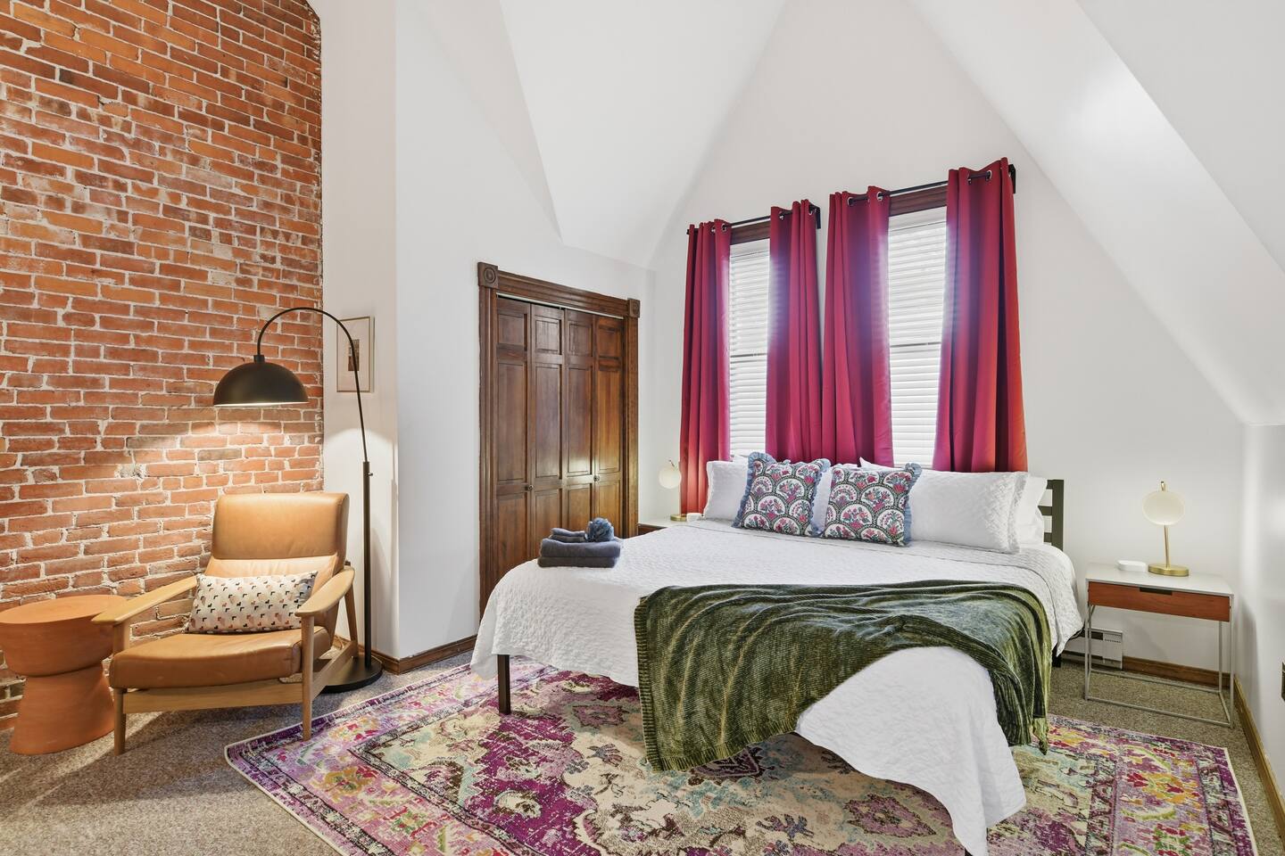 The bedroom is furnished with a king-size memory foam bed and a desk with a monitor, docking station, and everything needed to get work done from home. The living room is furnished with a nice 70-inch flat-screen TV where you'll be able to Netflix and chill with friends. Enjoy the massive exposed brick wall stemming the length of the apartment. Inside the kitchen, you'll find all the silverware, stainless steel pots and pans, and plates you need to cook yourself dinner from scratch! In terms of amenities, we've got you covered too! You'll have access to important things like An iron, blow dryer, towels, soap, napkins, body wash, and more.