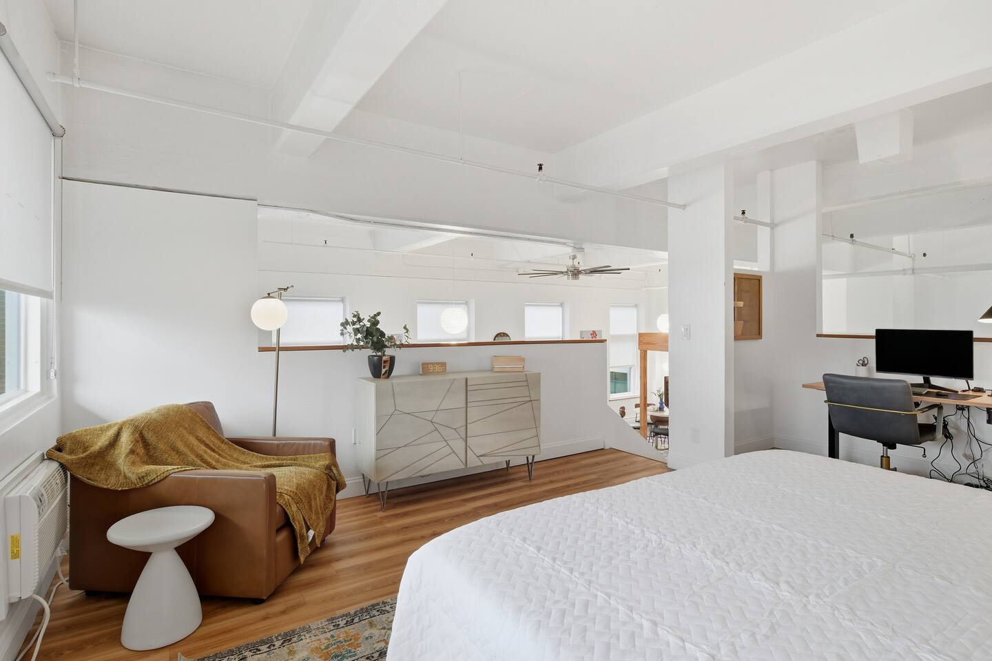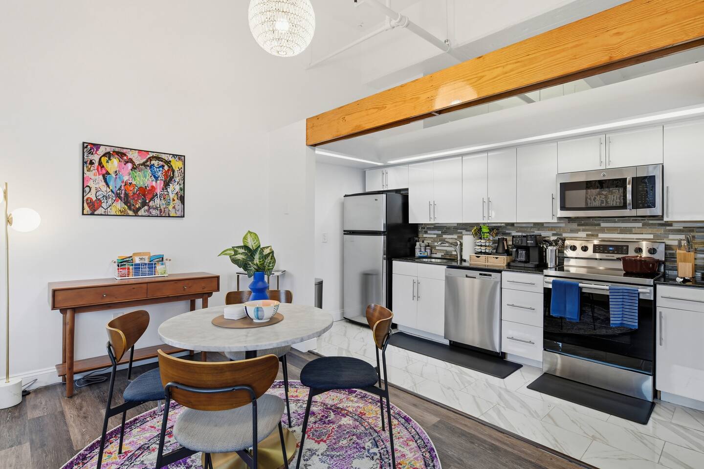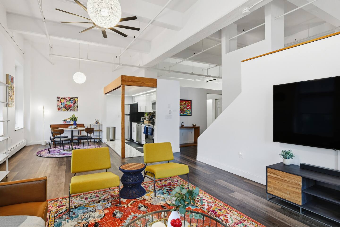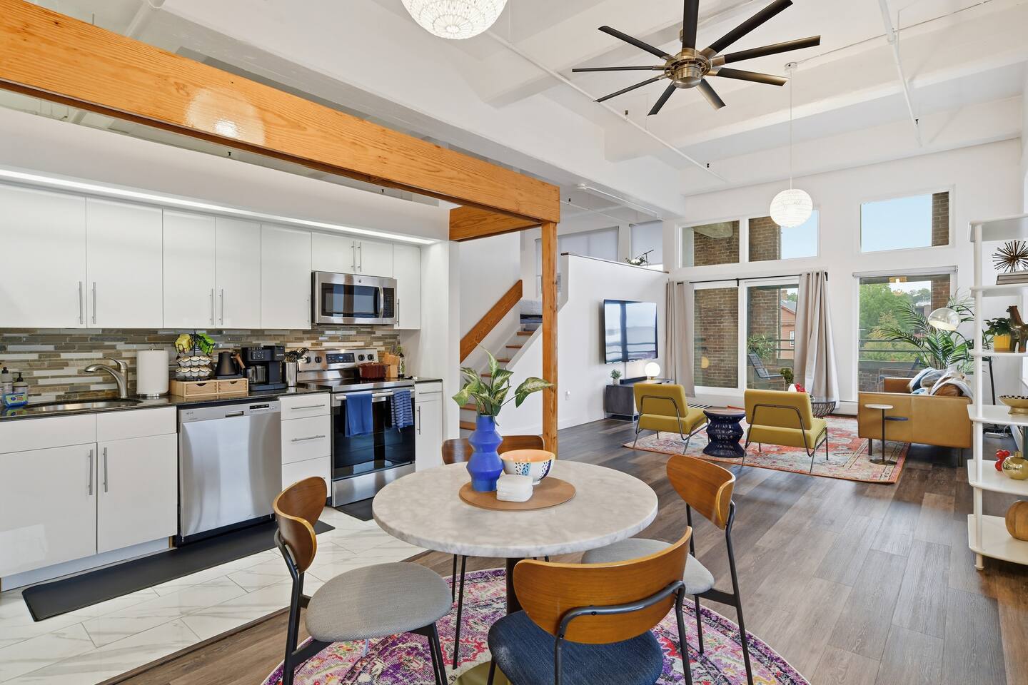 Stay in the heart of downtown Springfield. This spacious loft features a king bed, modern full bath, fully equipped kitchen with dishwasher, private patio, and heated garage parking. Located directly across from MGM Casino and steps from dining, shopping, and attractions. Perfect for business or leisure stays.