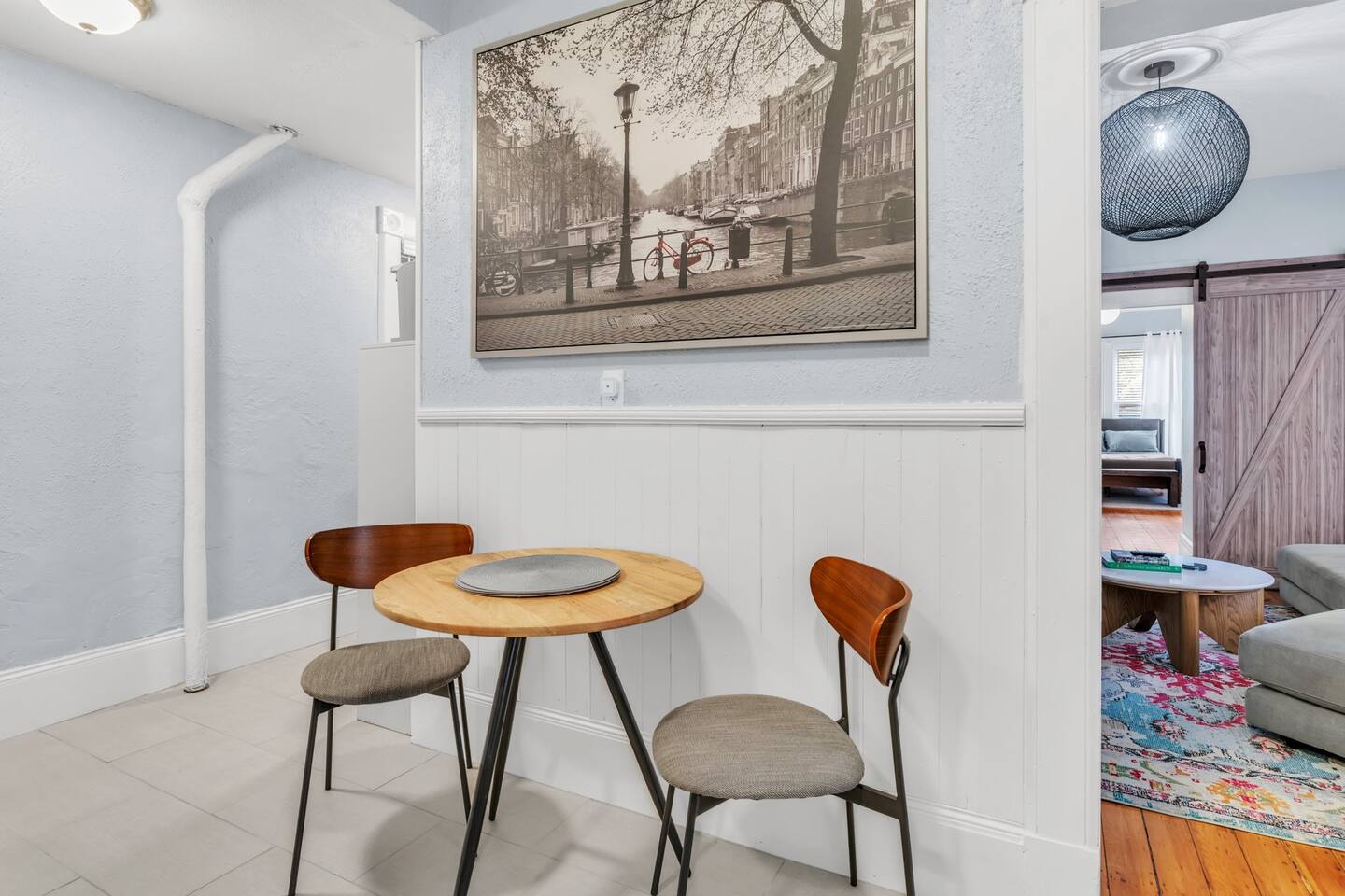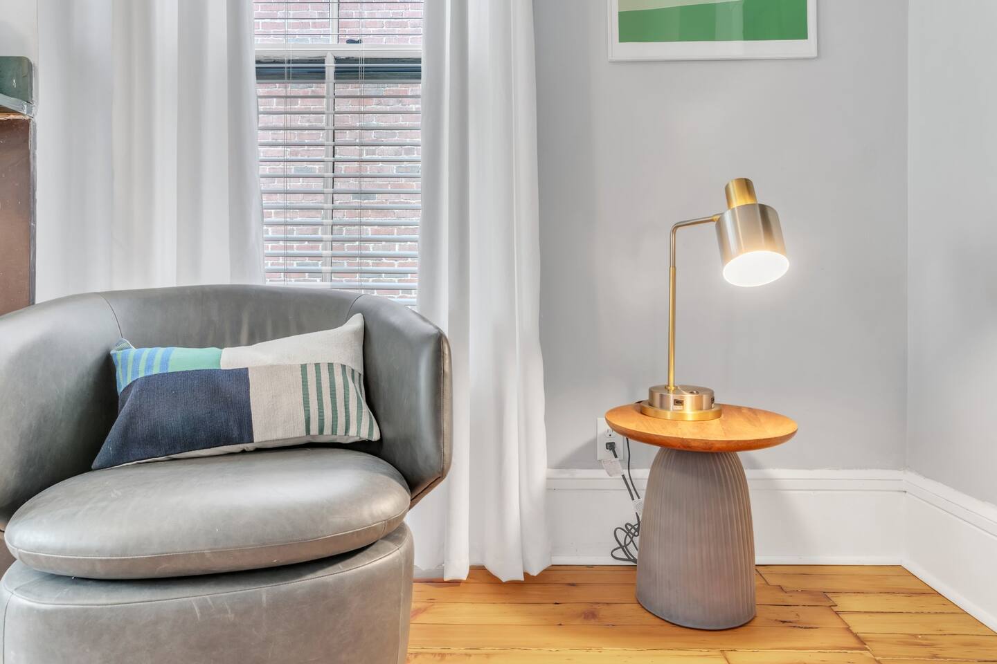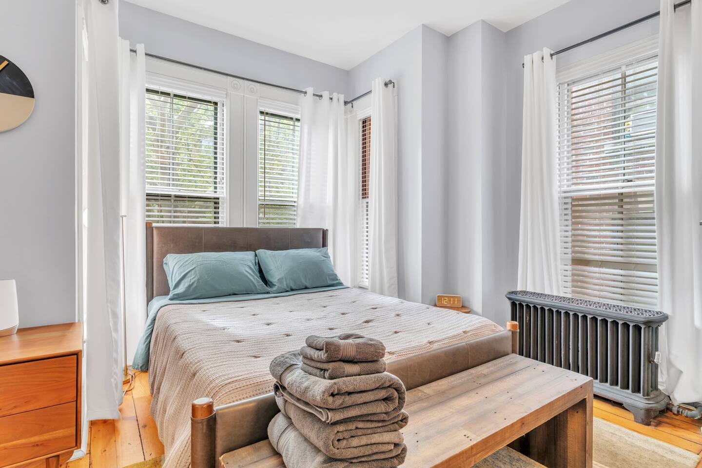 🏢 The Space This thoughtfully furnished second-floor apartment is located in a four-unit historic brownstone, offering a comfortable and well-appointed retreat in a classic setting. 🛏️ Sleeping Arrangements • Large, spacious bedroom with a queen-size memory foam bed • Designed for comfort, rest, and relaxation 🍳 Kitchen • Fully equipped with silverware, stainless steel pots, pans, and plates • Ideal for preparing meals at home or enjoying local takeout 📺 Living Area • Comfortable seating area • Large flat-screen TV for streaming your favorite shows 🧴 Amenities & Essentials • Fresh towels • Body wash, soap, and napkins • Hair dryer and iron • Thoughtful extras to ensure a comfortable stay 🧺 Laundry • Paid laundry machines available in a shared basement common area
