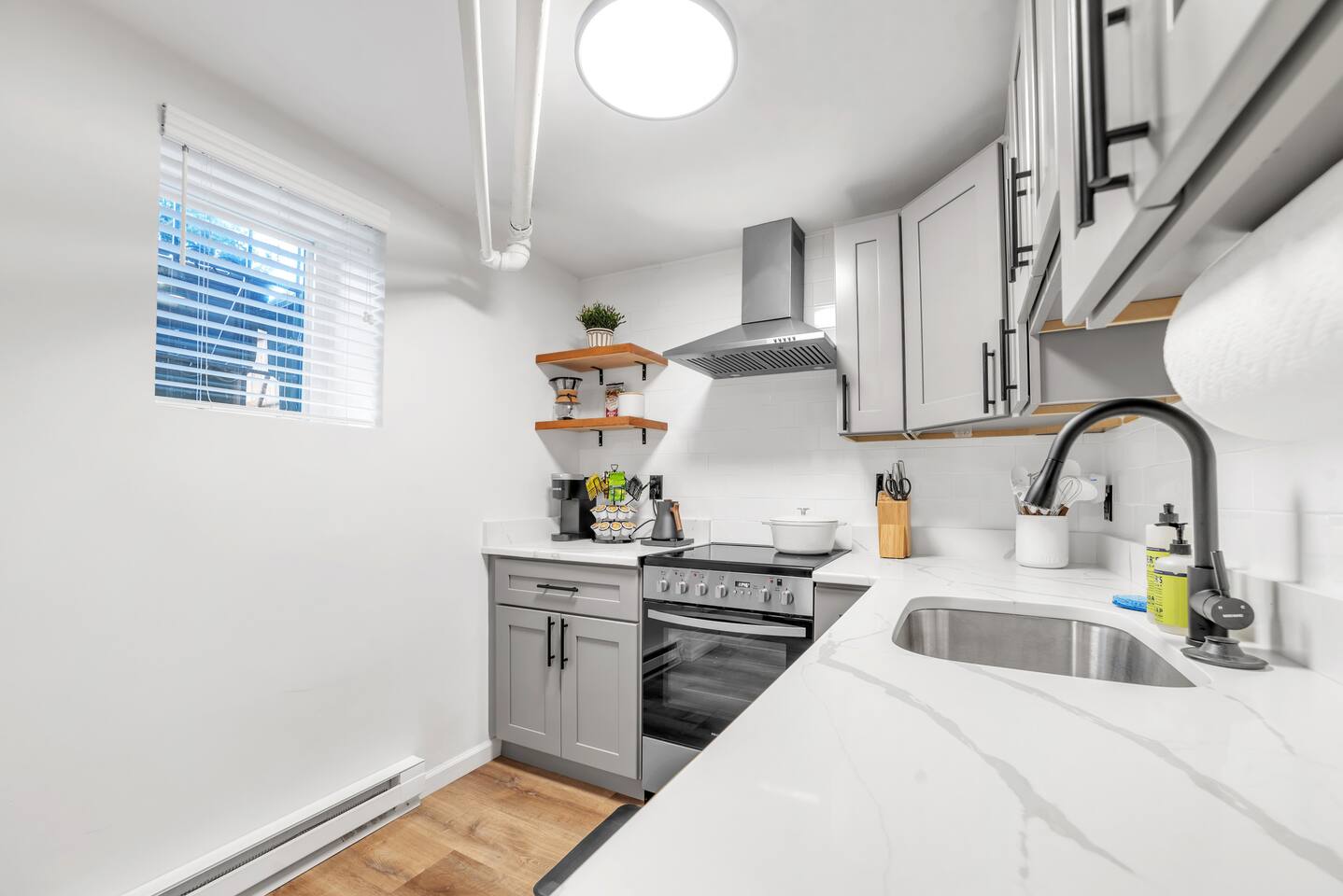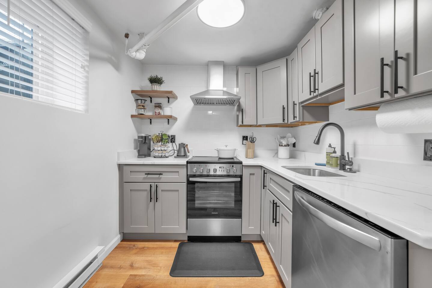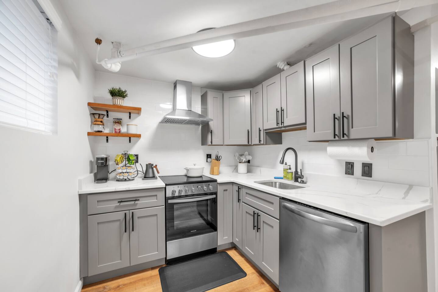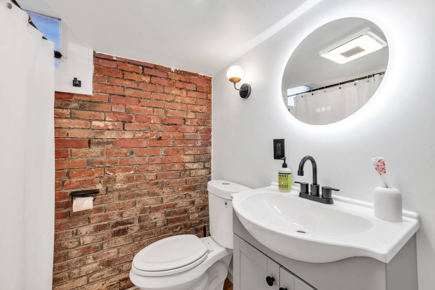 🛏️ Sleeping Area The apartment features a queen-size memory foam bed, thoughtfully placed next to a spacious closet for comfort and convenience. 📺 Living Area Relax in the living space with a 70-inch smart flat-screen TV set against a beautiful exposed brick wall, perfect for streaming your favorite shows and movies. 🍳 Kitchen The kitchen is fully equipped with silverware, stainless steel pots, pans, and plates, making it easy to prepare meals at home. 🧴 Amenities & Essentials Guests are provided with everyday essentials including an iron, hair dryer, fresh towels, soap, napkins, body wash, and additional toiletries to ensure a comfortable stay. ❄️ Seasonal Note Window AC units are available during warmer months, typically late spring through early fall, and are removed in winter to ensure proper maintenance and insulation.