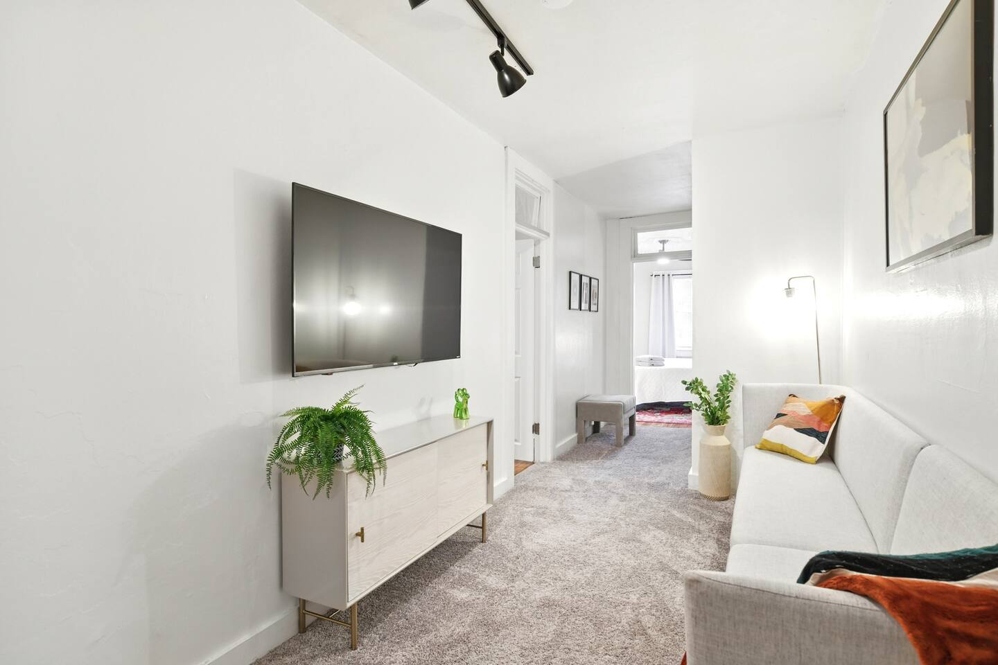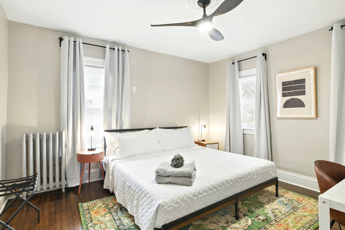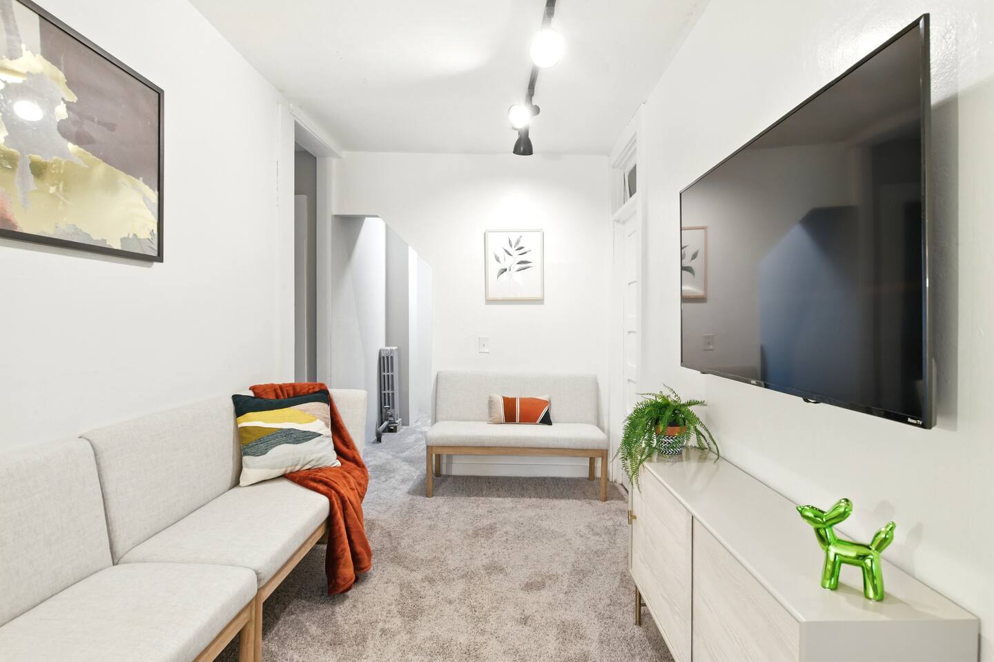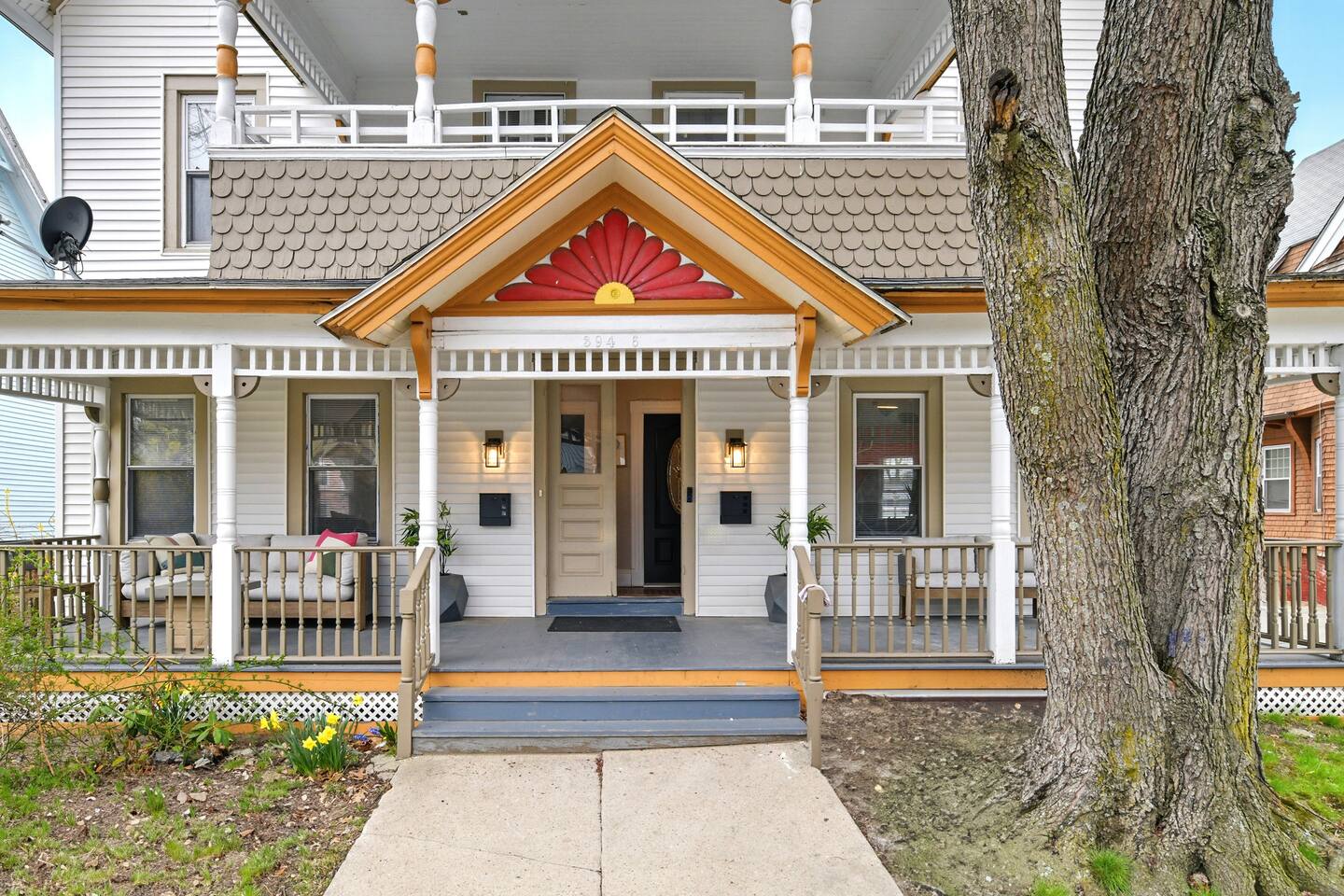 Guests have full access to their private unit and all indoor living areas within the home. This residence is part of a side-by-side two-family house, with separate private entrances and no shared interior spaces. Please note that the large front and back porches and the spacious backyard parking lot are shared exterior areas. The basement and supply closet on the 3rd floor are not accessible to guests.
