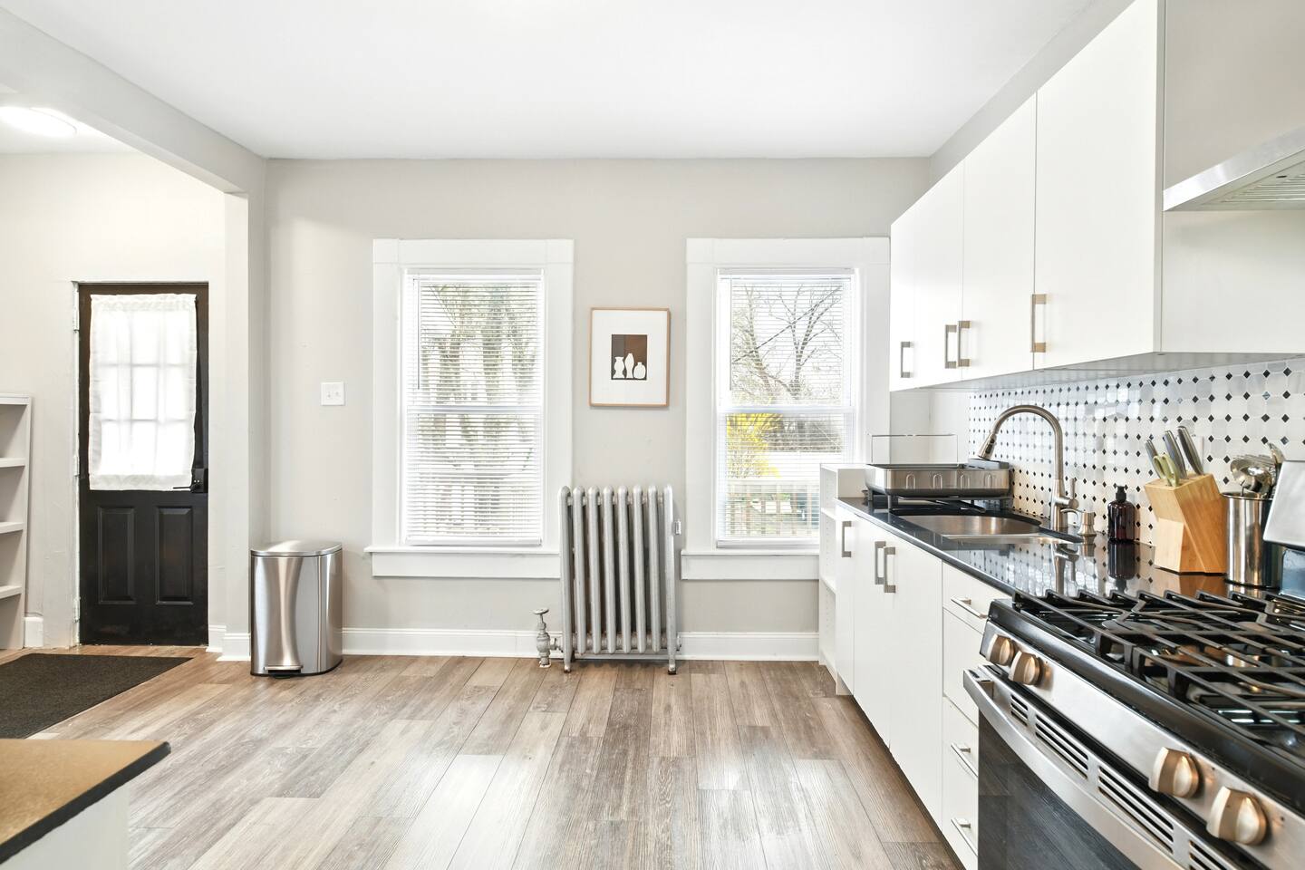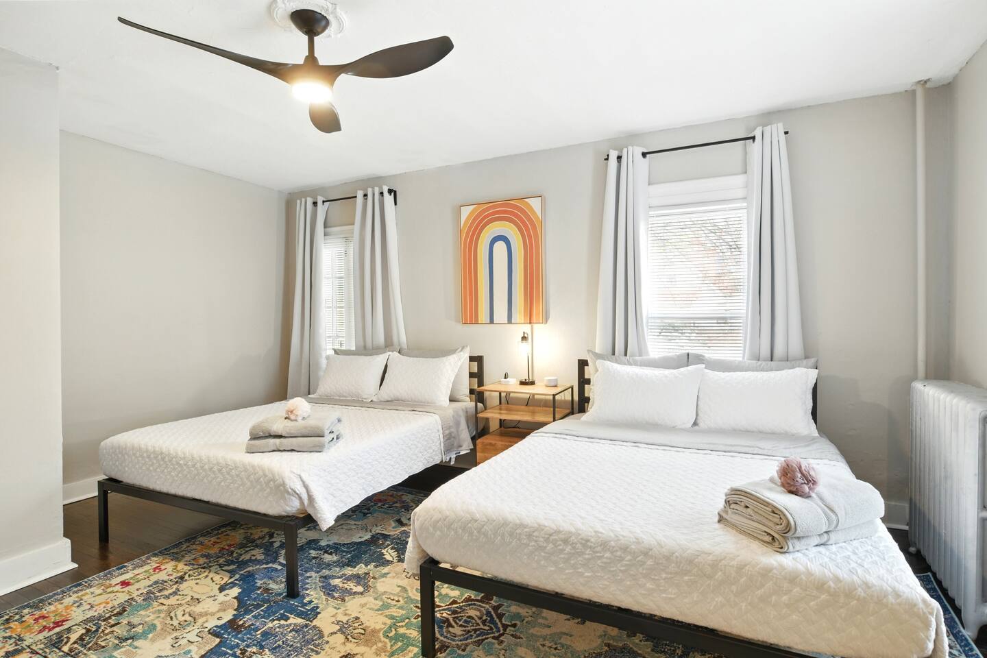 📍 Fantastic Location Close to local attractions, restaurants, and everyday essentials—everything you need for a memorable stay is just minutes away. Escape to this charming and expansive Victorian home in the historic McKnight neighborhood. This residence is part of a side-by-side duplex, offering a fully private interior with no shared indoor spaces. The unit has its own entrance and exit, while the front and back porches are shared exterior spaces. With 7 bedrooms, 2.5 bathrooms, and 2 full kitchens, this home is thoughtfully designed for large families, work retreats, or groups of friends seeking space, comfort, and character. 🏡 First Floor Step into a warm and welcoming space featuring gleaming hardwood floors, high ceilings, and classic architectural details. • Fully equipped main kitchen for preparing group meals • Formal dining room with ample seating • Cozy living room for relaxing and gathering • Convenient half bathroom located by the kitchen 🛏️ Second Floor • 3 spacious bedrooms (2 king beds, 2 queen beds) • 1 full bathroom • Memory foam beds in each room • Large desks ideal for remote work, reading, or quiet time 🛌 Third Floor • 4 additional bedrooms (4 king beds) • 1 full bathroom • Second full kitchen for added flexibility • Ideal for larger groups or multiple families staying together 🔐 Keyless Entry A smart lock provides easy, contactless check-in. Your unique access code will be sent the day before arrival. 🚗 Parking • Private, fenced backyard parking for up to 4 vehicles 🍳 Kitchen Essentials (Both Kitchens) Toaster, coffee maker, blender, stainless steel pots & pans, baking sheets, mixing bowls, cooking utensils, steak knives, cutting board, wine opener, dinnerware, glassware, cutlery, fire extinguisher, and more. ❄️ Seasonal Note Window AC units are available during warmer months (typically late spring through early fall) and removed in winter to ensure proper insulation and maintenance.