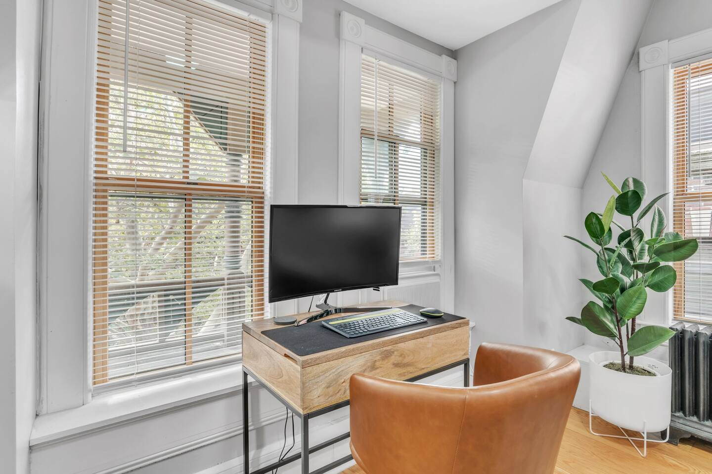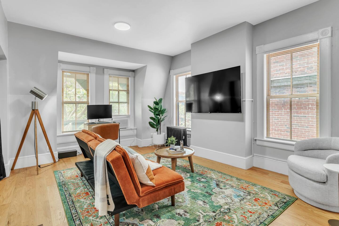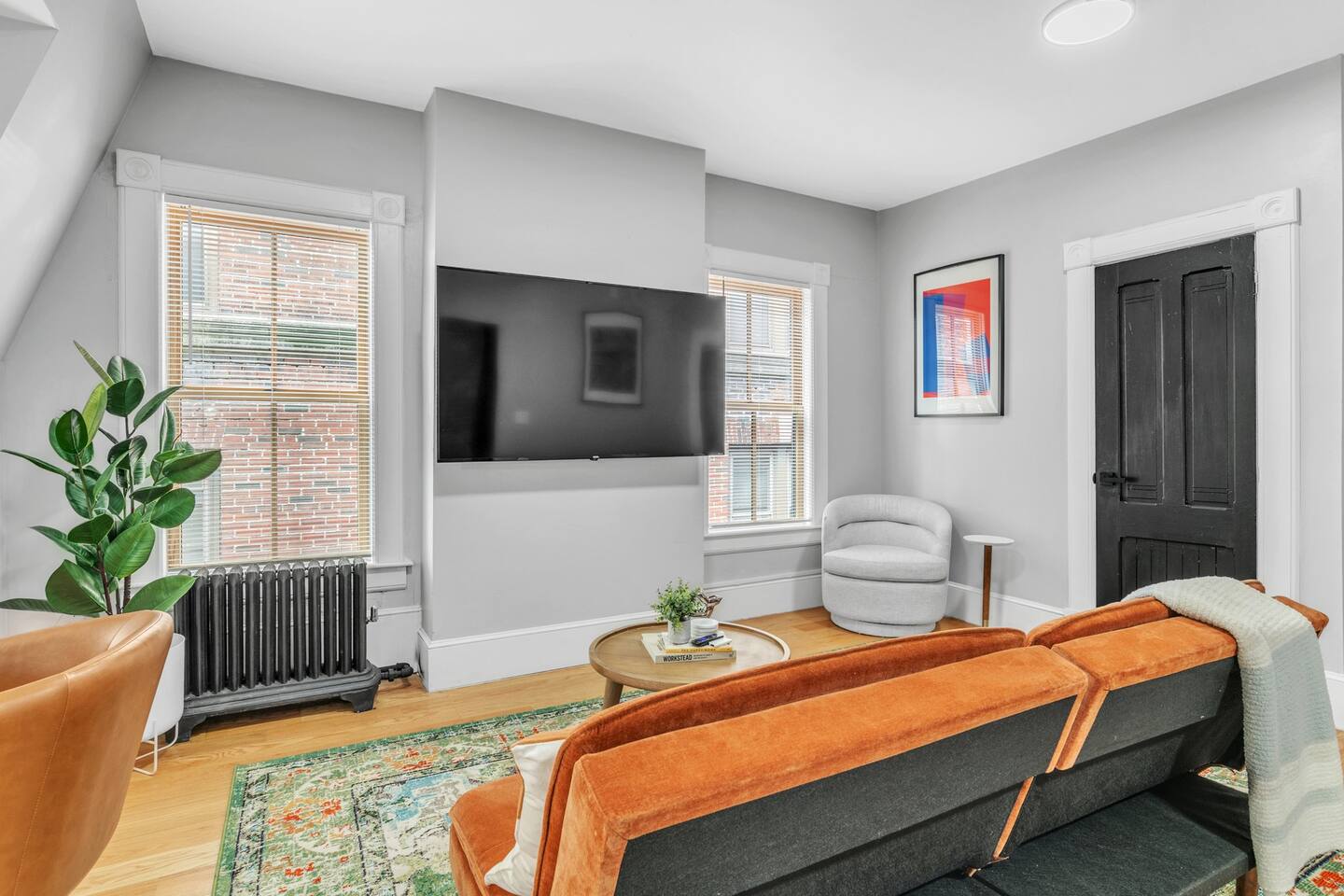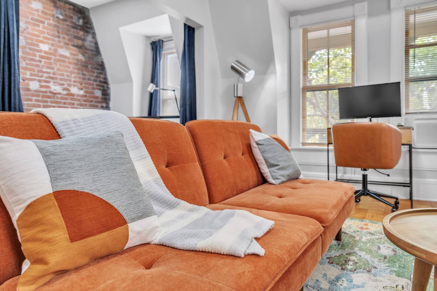 🏢 The Space This thoughtfully furnished third-floor apartment is located in a four-unit historic brownstone, offering a comfortable and well-appointed retreat in a classic setting. 🛏️ Sleeping Arrangements • Queen-size memory foam bed tucked beside a charming exposed brick wall • Full-size West Elm sleeper sofa for additional guests 🍳 Kitchen • Fully equipped with silverware, stainless steel pots, pans, and plates • Perfect for preparing meals at home or enjoying takeout 📺 Living Area • Comfortable seating area • Large 70-inch flat-screen TV for streaming your favorite shows 🧴 Amenities & Essentials • Fresh towels • Body wash, soap, and napkins • Hair dryer and iron • Thoughtful extras to make your stay comfortable 🧺 Laundry • Paid laundry machines available in a shared basement common area